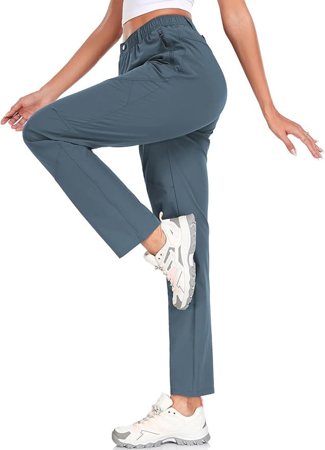 Womens Travel Hiking Pants Ladies Outdoor Water Resistant Nylon Light Weight Golf Casual Pants with Elastic Waist