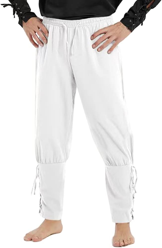 Men's Medieval Ankle Tapered Banded Cuff Pants Viking Navigator Pirate Renaissance Costume Gothic Casual Trousers