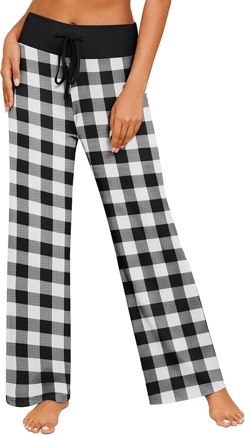 Women's Pajama Pants Wide Leg Yoga Pants Lounge Drawstring Pants Comfy Stretch Plaid Pj Bottoms