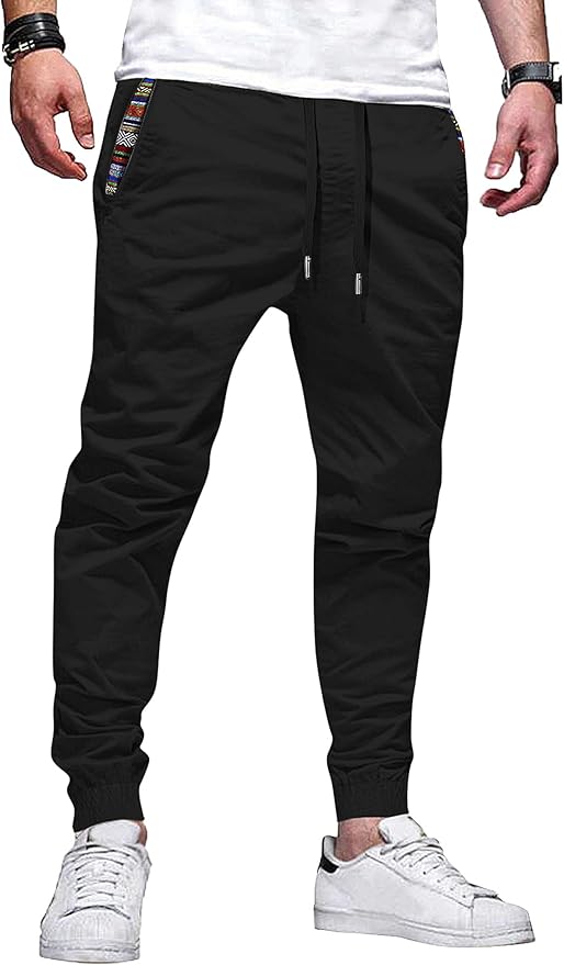 Men's Casual Chino Joggers Pants Cotton Twill Elastic Drawstring Waist Tapered Pants with Pockets