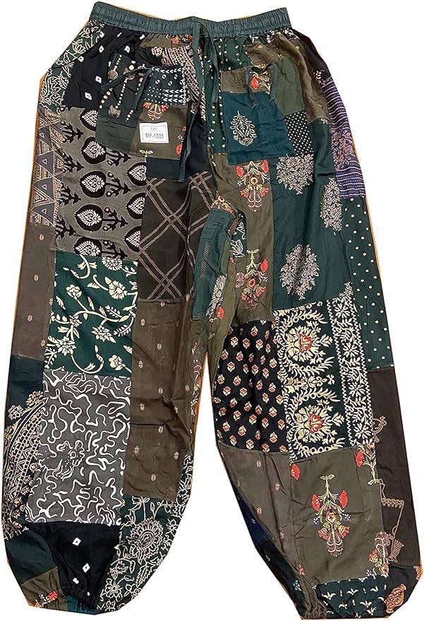 Unisex Cotton Patchwork Harem Pants with Pockets Super Comfy Hippie Yoga Boho Trousers Pant for Men Women