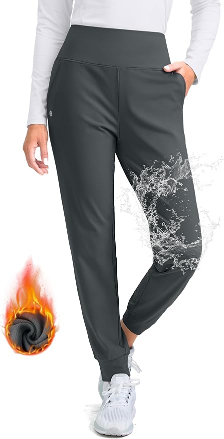 Women's Fleece Lined Joggers High Waisted Water Resistant Thermal Hiking Pants Cold Weather Sweatpants with Pockets