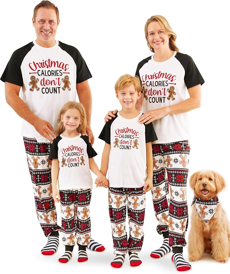 Family Matching Christmas Pajamas Short Sleeve Top&Long Pants Pjs Set Xmas Fuuny Print Jammies Sleepwear
