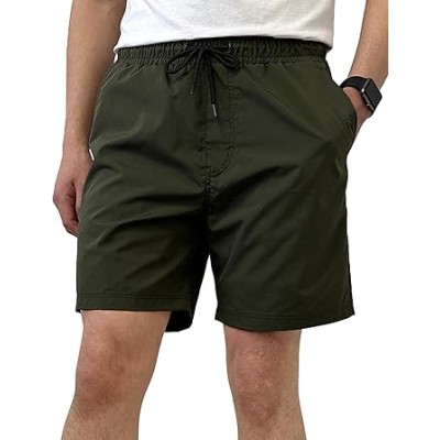 Mens Casual Shorts Elastic Waist Drawstring Shorts Lightweight Summer Beach Shorts