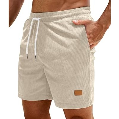 Men's Casual 5" Shorts Corduroy Elastic Waist Drawstring Summer Beach Short