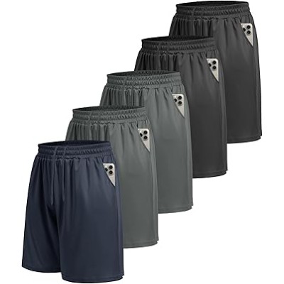5 Pack Gym Mens Shorts - Quick Dry Basketball Workout Athletic Shorts with Pockets for Running Casual Activewear