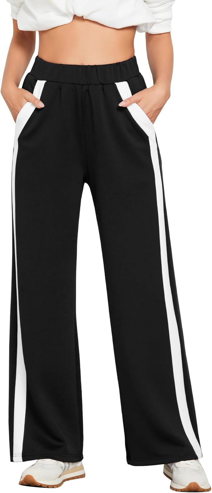 Wide Leg Sweatpants Women Baggy High Waisted Pull On Athleisure Loose Lounge Color Block Sweat Pants with Pocket