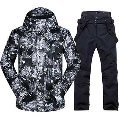 Mens Ski Jacket and Pants Set Ski Suit Winter Waterproof Windproof Hooded Snow Coat 2 Pieces Snowboarding Snowsuits