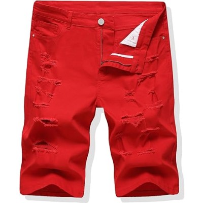 Men's Ripped Shorts Jeans Loose Fit Classic Stretch Destroyed Casual Denim Short