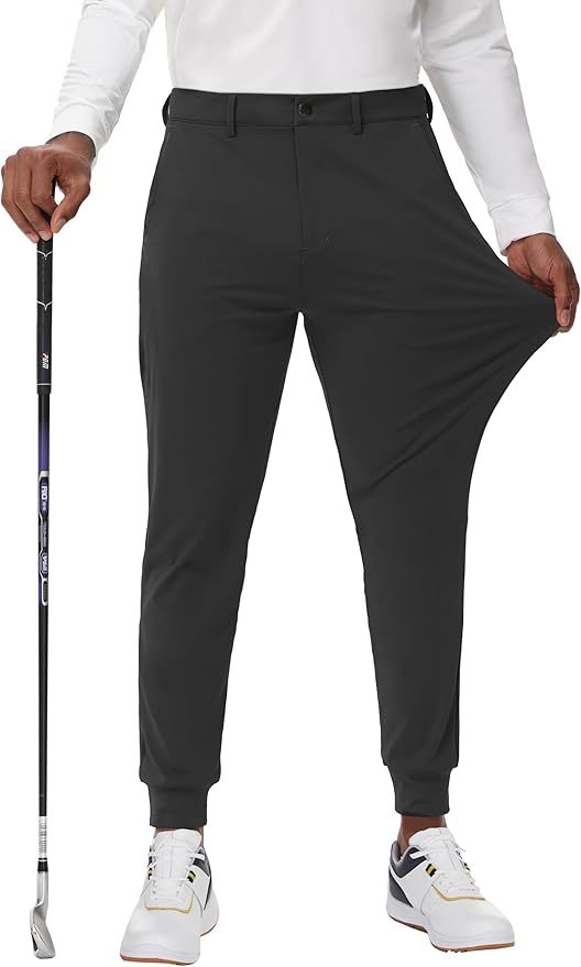 Men's Golf Joggers Pants Belt Loops Slim Fit Stretchy Sweatpants Work Travel Dress Casual Tapered Pants Quick Dry UPF50