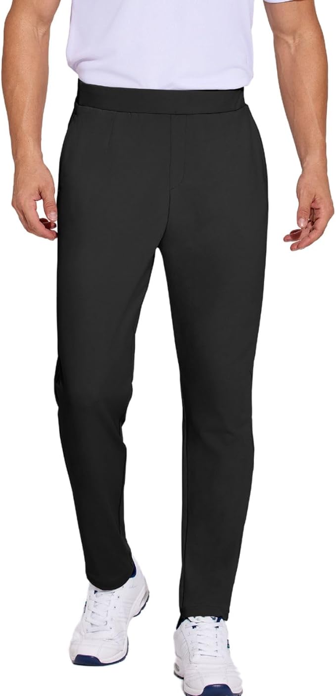 Men's Sweat Elastic Waist Golf Pants Stretch Relaxed Fit Pull on No Belt Loops Casual Dress Pants with Pockets