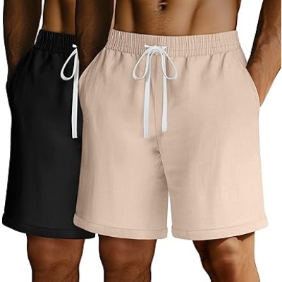 Men's Linen Shorts 7" Casual Elastic Waist Drawstring Summer Beach Shorts