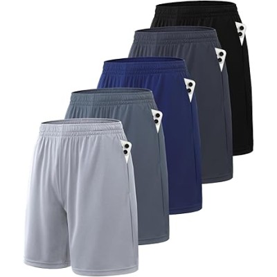 5 Pack Gym Mens Shorts - Quick Dry Basketball Workout Athletic Shorts with Pockets for Running Casual Activewear