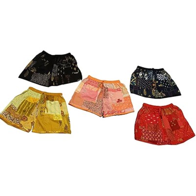 Wholesale Lot of Pcs Unisex Boho Bohemian Hippie Rayon Patchwork Pockets, Rayon Summer Bottoms-Patchwork Summer Shorts