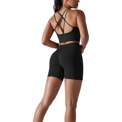 Fitness Yoga Suit Shockproof Vest High Waist Shorts Breathable Women's Tight Fitting Sports Bra Underwear Shorts Set