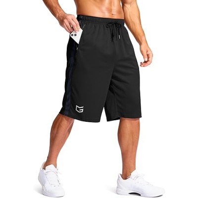 Men's 11" Long Basketball Shorts with Zipper Pockets Mesh Quick Dry Lightweight Gym Athletic Shorts for Men