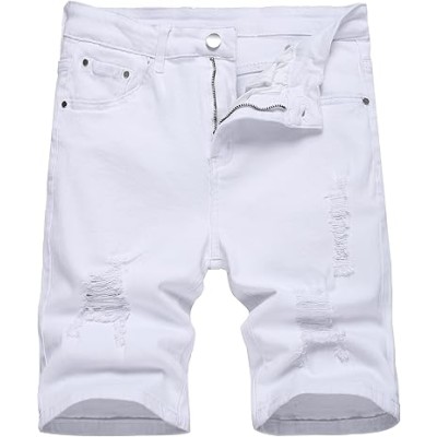 Men's Slim Fit Stretch Denim Shorts Ripped Skinny Jean Shorts for Men,Fashion Straight Comfort Flex Waist Short