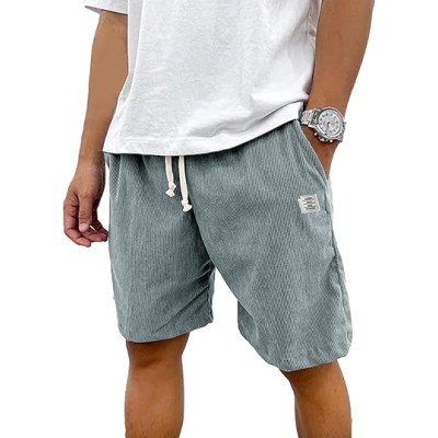 Mens Corduroy Shorts Casual 7 Inch Elastic Waist Drawstring Summer Beach Loose Fit Shorts