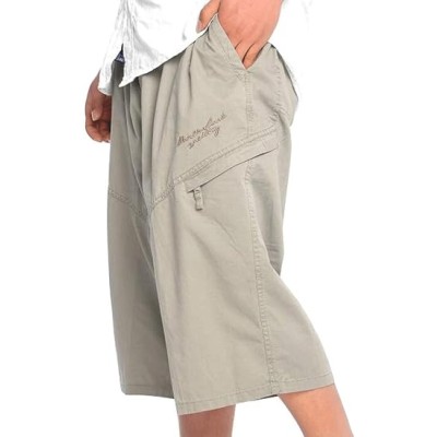 Mens Below Knee 3/4 Long Cargo Shorts Elastic Relaxed Fit Cotton Casual Twill Capri Pant