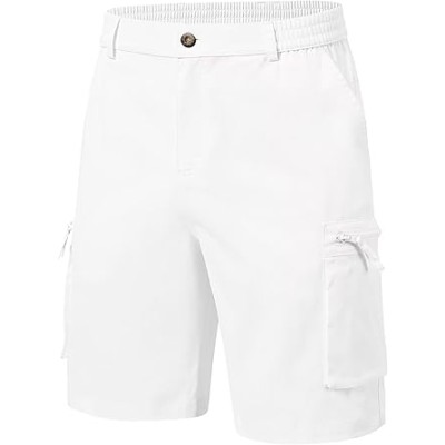 Men's Casual Stretch Cargo Shorts Classic Drawstring Elastic Waist Summer Work Short with Multi Pockets