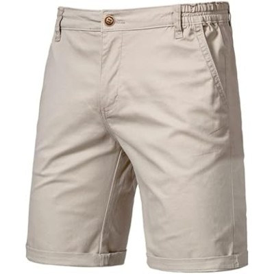 Men's Cotton Chino Shorts, Relaxed Fit, Straight Leg, Zippered Front, Button Closure, 2 Side Pockets, 2 Back Pockets