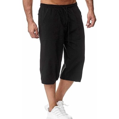 Men's Long Linen Shorts Below Knee Pocketed 3/4 Summer Drawstring Capri Pant
