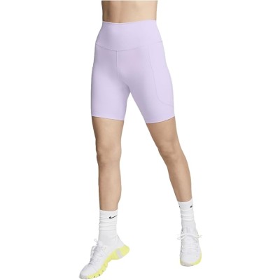 One Women's High-Waisted 8" Biker Shorts with Pockets (Lilac Bloom/Black, FZ6758-512) Size X-Small